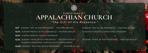 At Appalachian Church, our mission is to worship God, preach the Word, teach the Word, live the Word and reach people with the gospel.